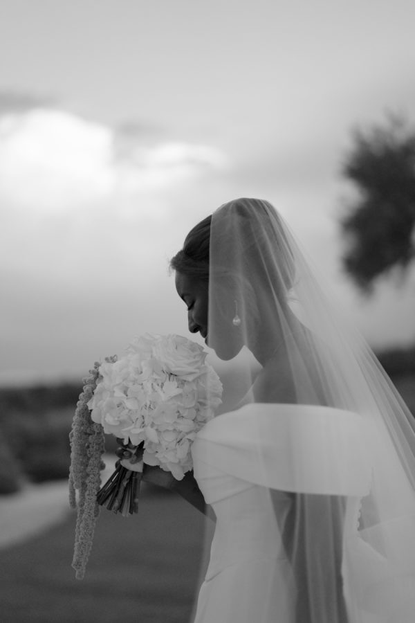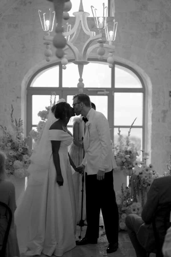 Despite stormy weather on the wedding day, the couple embraced the moment wholeheartedly. The ceremony moved indoors to a romantic stone room, and by sunset, the rain cleared, revealing sweeping coastal views for dinner. A reminder that the most memorable moments often come from the unexpected.