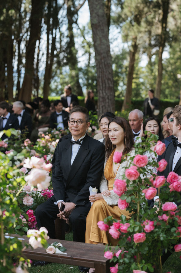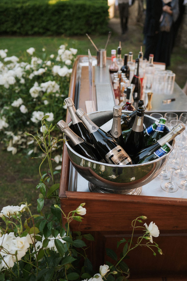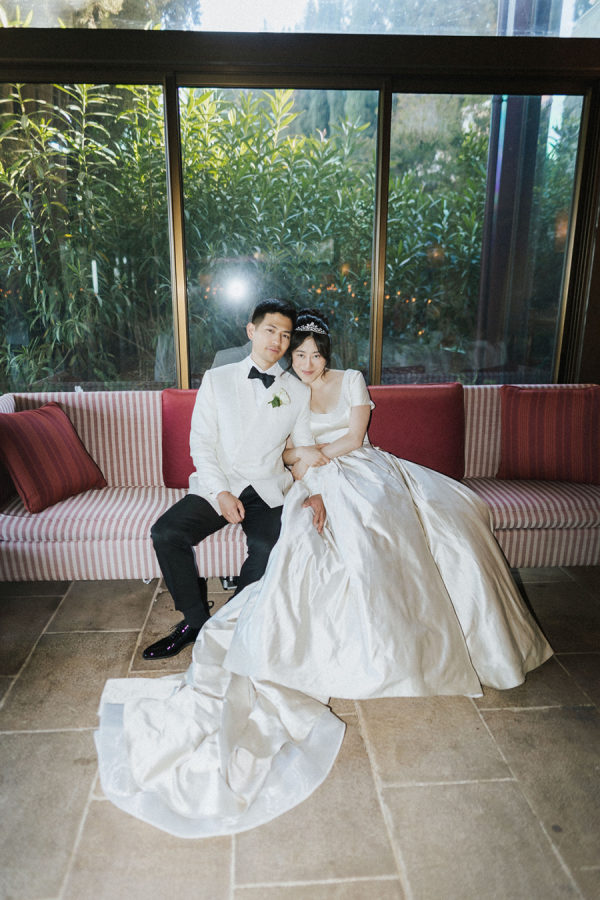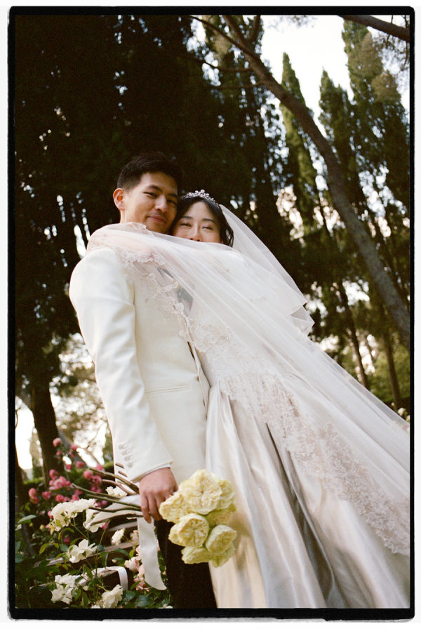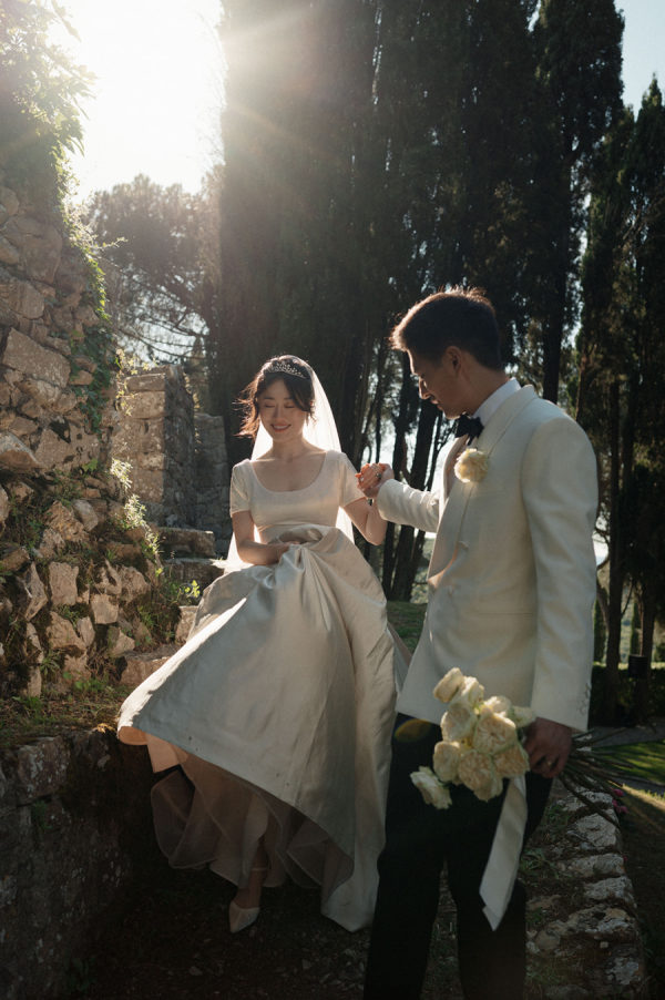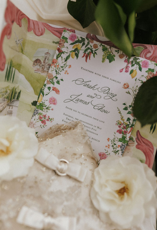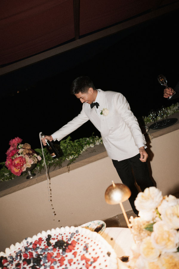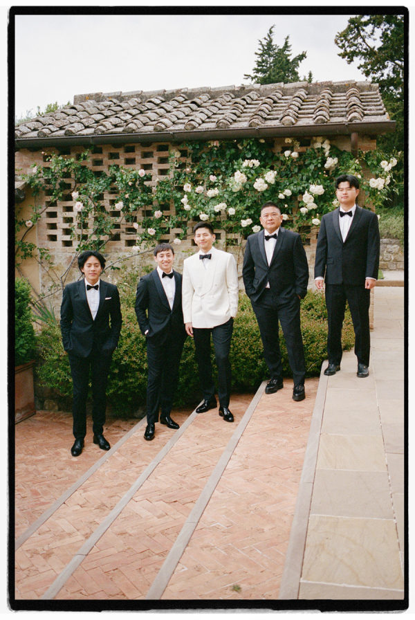 [field title=”Food & Drink”]They had their wedding dinner in the Michelin start reatuarant of Rosewood. Dinner reflected James’s chef background, beginning with beef carpaccio, followed by ricotta gnudi, slow-cooked veal cheeks, and finishing with a traditional millefoglie cake at the venue’s two-Michelin-star restaurant. Guests stayed refreshed throughout the day—welcomed with flavored water, sipping Italian spritzes during cocktail hour, and enjoying estate Brunello with dinner. Later, the open bar kept the celebration flowing, with the espresso martini emerging as the undeniable star of the night.[/field]